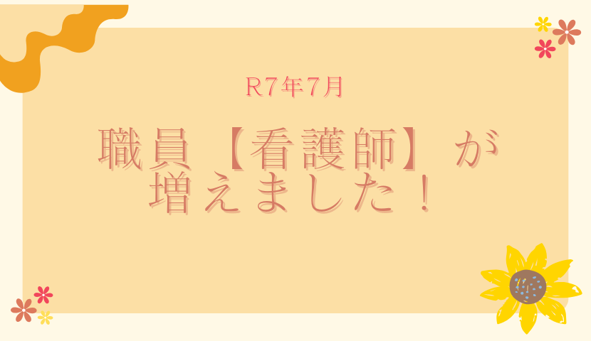 職員【看護師】が増えました! 2025.07.01 2026.02.17 ニュースリリース 令和7年7月1日より、クラシアスに新しい職員【看護師】が加わりました。 これまでの経験を活かし、利用者様やご家族に寄り添った温かい看護をお届けしてまいります。 今後ともどうぞよろしくお願いいたします。 採用情報【令和7年】 前の記事 職員【作業療法士】が増えました! 次の記事